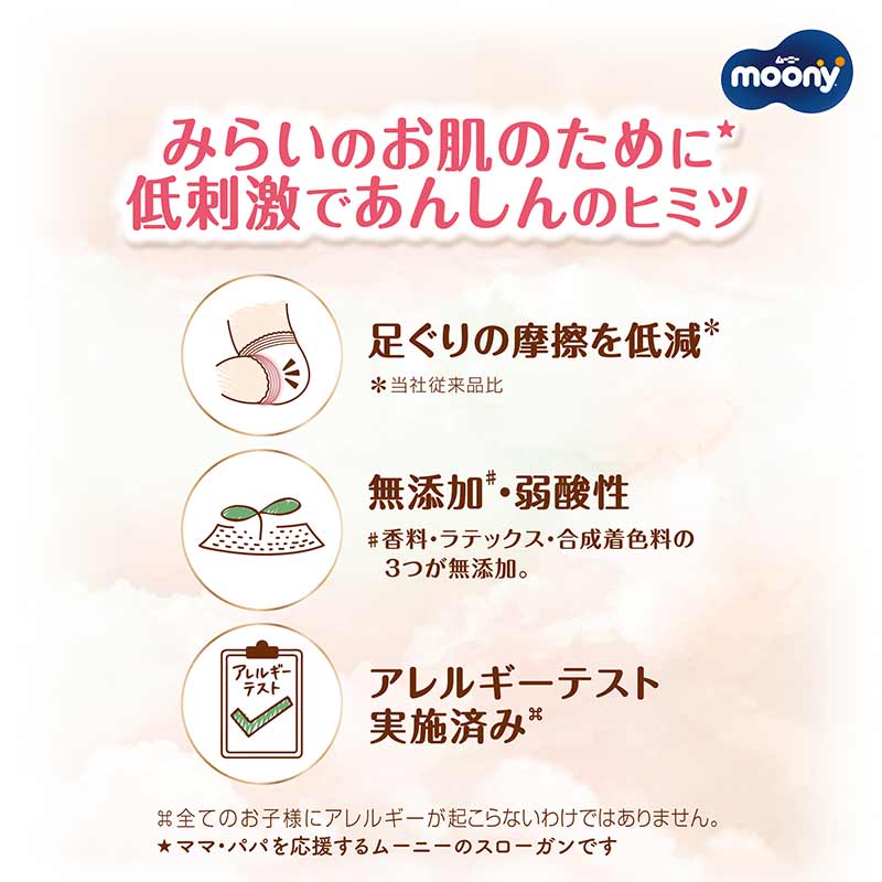 みらいのお肌のために、低刺激であんしん。 ふわふわでやわらかい肌触り。 ゆるいうんちがお肌につきにくい。