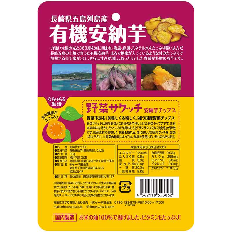 ●内容量:28g ●原材料:有機安納芋(長崎県産)、こめ油