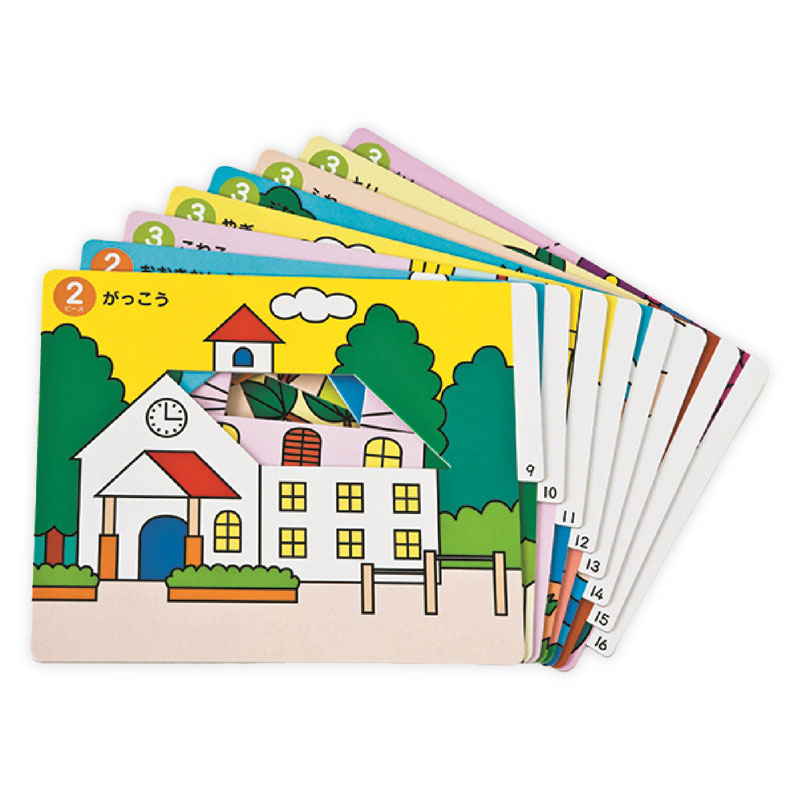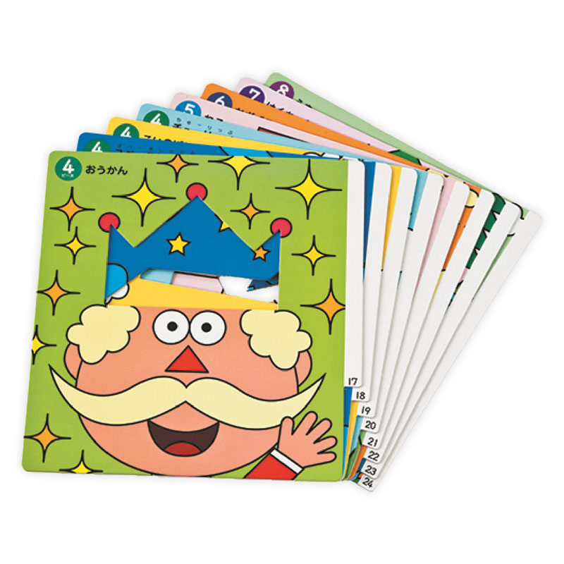 ●対象年齢:2歳~ ●本体サイズ(ピース):各辺5×5×7cm ●パッケージサイズ:横30.5×縦20.5×奥行4.5cm ●全体重量:約1,350g ●セット内容:[木製ピース]8個 [ガイドボード]24枚(大・中・小各8枚) ●材質:[ピース]ブナ [ガイドボード]厚紙 [ガイドブック]紙
