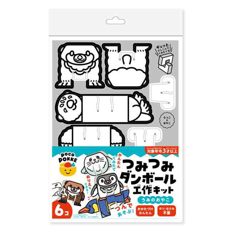 のり・はさみ不要!組み立てかんたん、ぬりえもできる! 海のどうぶつの親子をモチーフにした 6種類のダンボールフィギュアがつくれます。 同じマークを合わせて差し込むだけ。 はさみとのり不要! クレヨンや色鉛筆でぬりえも楽しめます。 バランス遊びやごっこ遊びなどもできます。