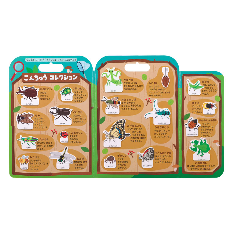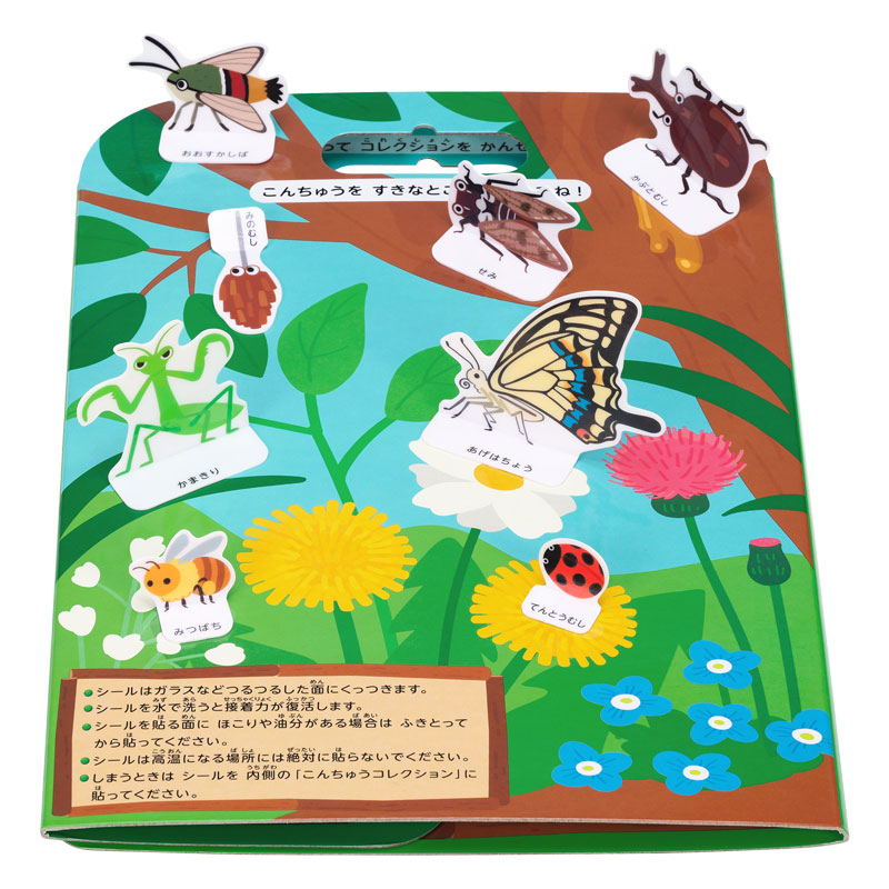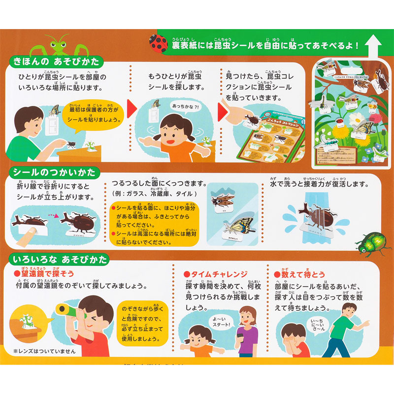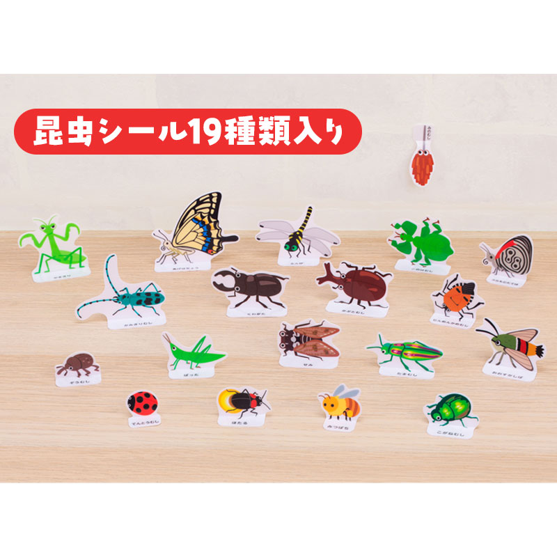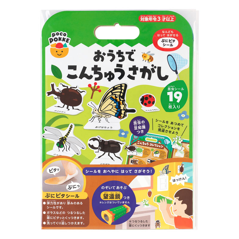 おうちの中でこんちゅうさがし! おへやのあちこちにシールをはって、こんちゅうさがしが楽しめます。 はってはがせる「ぷにピタシール」。