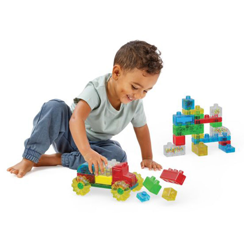 踏んでも痛くない、やわらかブロック。 ブロック遊びをする前のスクイーズとして 握ったり捩じったりして手指の感覚と握力を育てます。 もちろんブロック遊びも可能で、やわらかいから踏んでも痛くないブロック。 透明ブロックの中には砂やビーズなど色々な素材が入っていて、 見た目も楽しくいろいろな感触を楽しむことができます。 ねじったり握ったりすることで握力を鍛え、 指先の運動で脳を活性化させます。