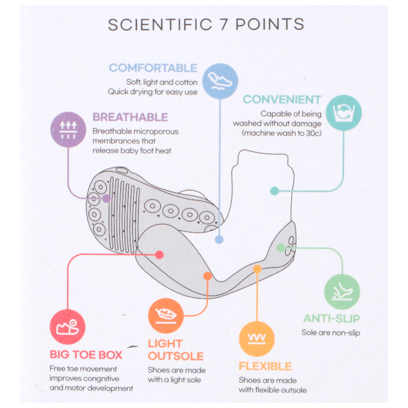 年齢別サイズの目安M:11.5cm 足のサイズ:109~115mm 目安年齢:8~11ヶ月 L:12.5cm 足のサイズ:116~125mm 目安年齢:12ヶ月~ XL:13.5cm 足のサイズ:126~135mm 目安年齢:18ヶ月~ アッパー:綿・ナイロン・ポリエステル・ポリウレタン アウトソール:サーモプラスチックラバー