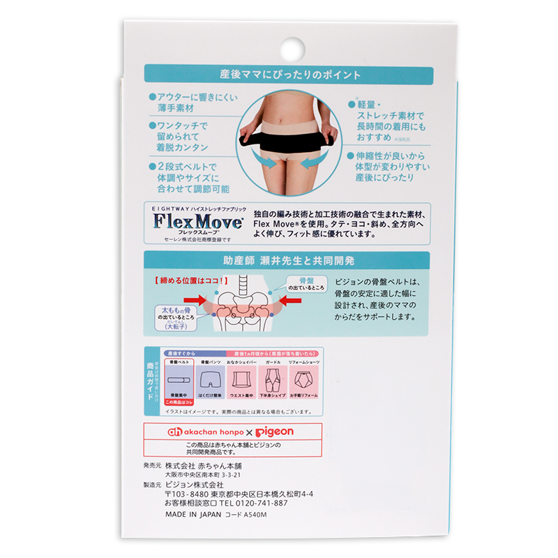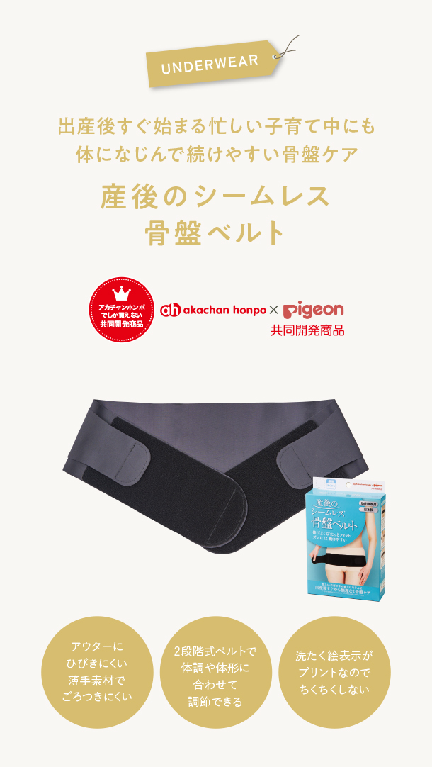 シームレス素材※だから伸びよくぴたっとフィットでズレにくく動きやすい。忙しい子育て中の動きになじんで出産後すぐから無理なく骨盤ケア。※肌にあたる場所はシームレスですがベルトの留める箇所に一部縫製が入ります。 ●助産師推奨 ●日本製