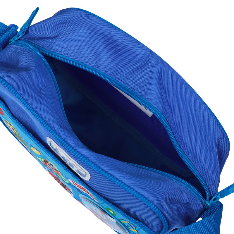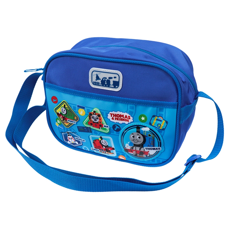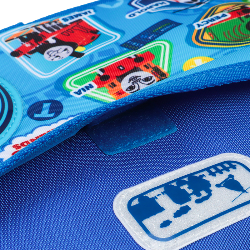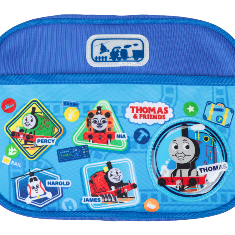 きかんしゃトーマスがプリントされた通園ショルダー。 長さ調整可能なショルダー紐で持ち歩きに便利。前面のポケットは面ファスナーの仕様。 前面にはリフレクター素材の反射ワッペン(ロゴ部分)付きで大変よく目立つ。