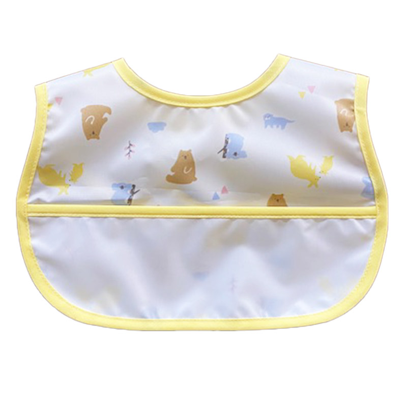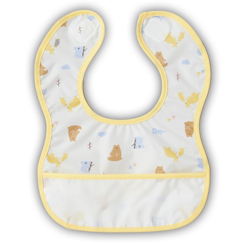 胸もとdeキャッチ! 丈が短めの 離乳食エプロン アニマル イエロー