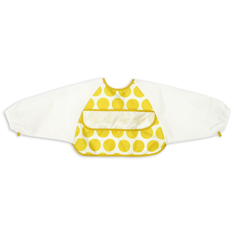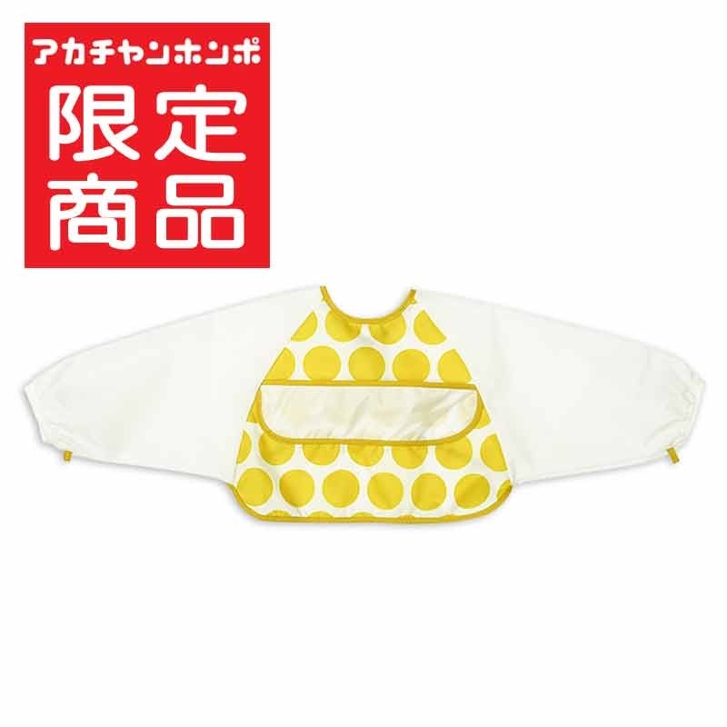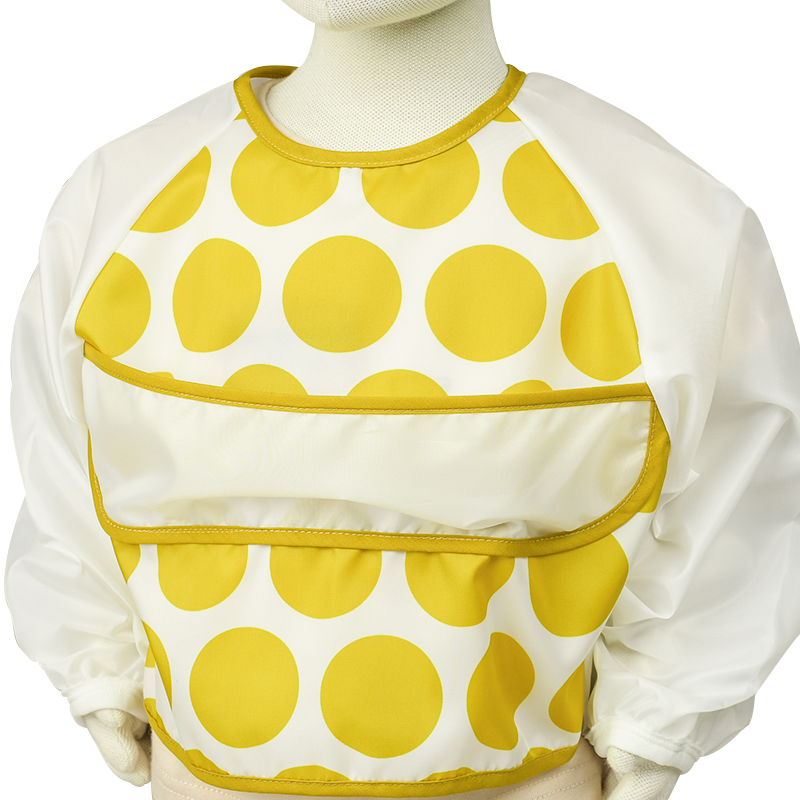 袖が汚れても 上手に脱ぎやすい 長袖おしょくじエプロン イエロー