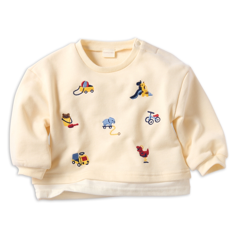 本体:綿58%ポリエステル42% リブ部分:綿55%ポリエステル38%ポリウレタン7% 切替部分:綿60%ポリエステル40% 【70cm】着丈29胸囲63肩幅31.5袖丈18 【80cm】着丈32胸囲65肩幅33袖丈2 【90cm】着丈35胸囲68肩幅34袖丈26 【95cm】着丈36.5胸囲70肩幅35袖丈28
