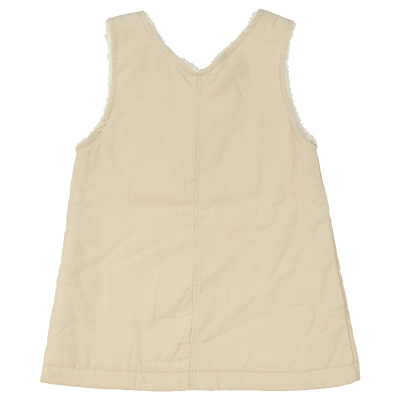 裏地にボアを使用した暖かいジャンパースカートです。表地は、薄手のデニムとコーデュロイを使用し、もたつきません。シンプルな形、ベーシックな色展開で、着用しやすく、コーディネートの巾が広がります。名前が書けるお名前タグ付きです。