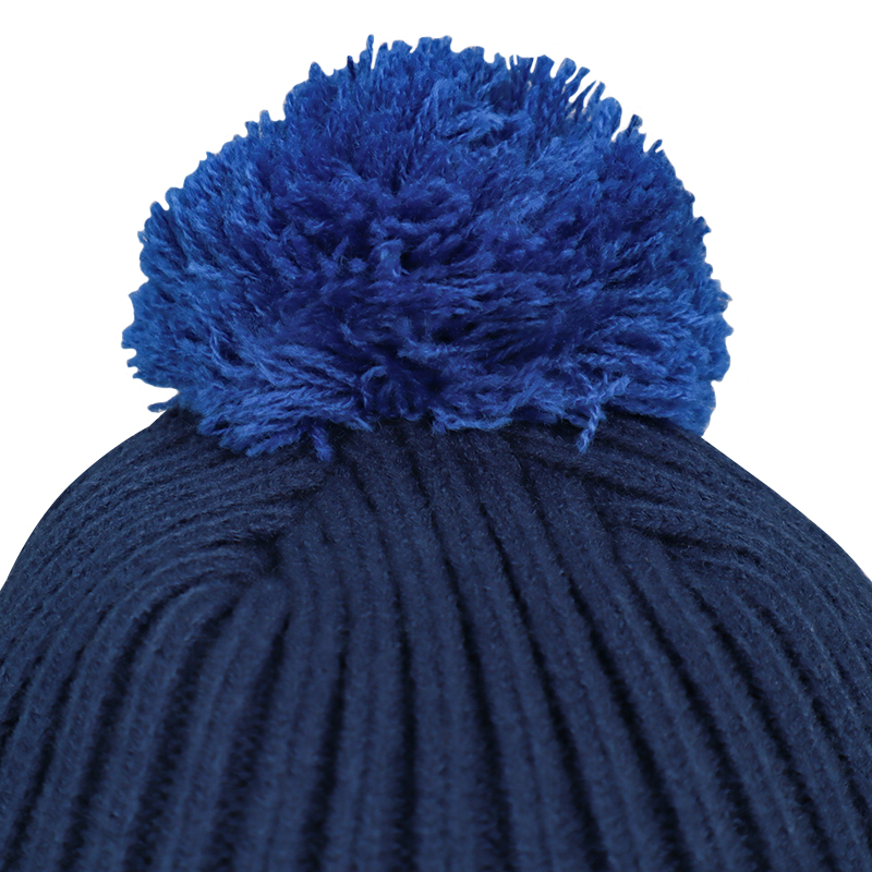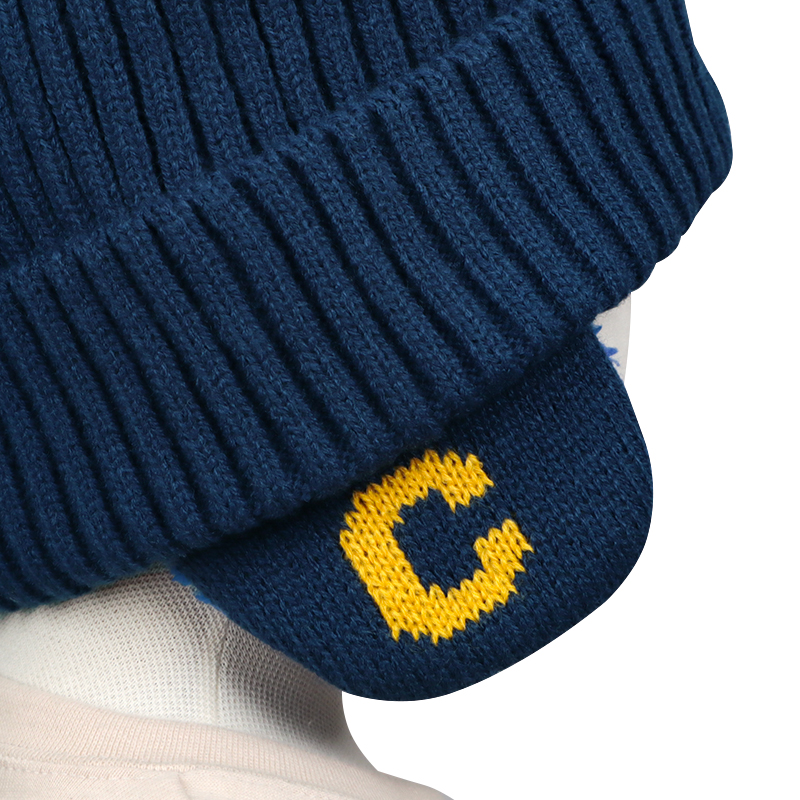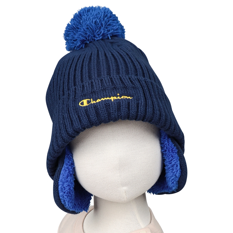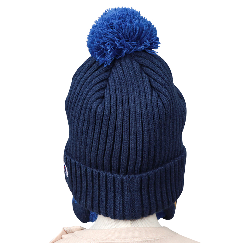 梵天のある子どもらしいデザインのニット帽子です。頭の裏にはフリースがついていて、耳部分の内側にはボアがついています。とても温かで被りごごちも良い帽子です。耳部分のCとPのジャガードがデザインポイントです。