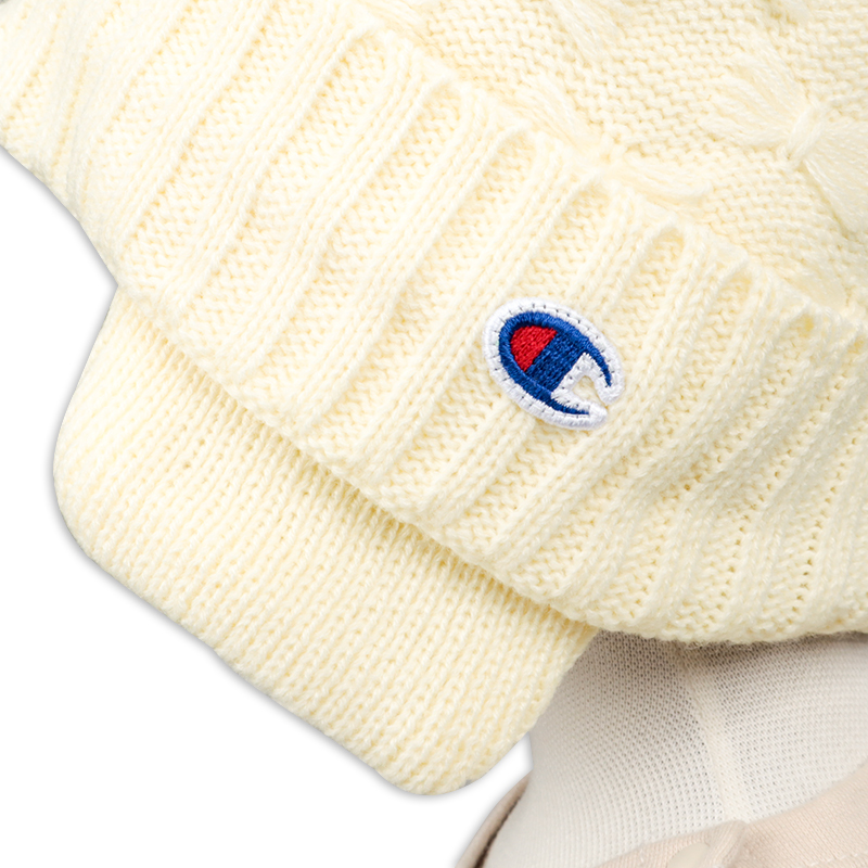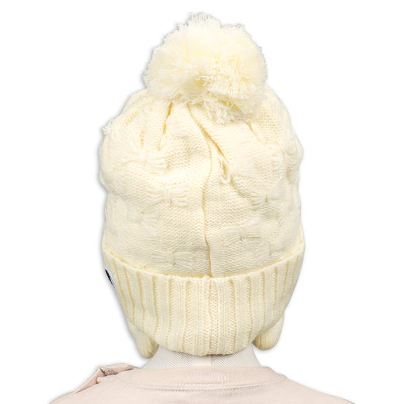 編み地がリボン柄になっていて被るととても可愛いです。裏側が全部ボアになっているので、ボリューム感もあり暖かいです。ニット部分と刺繍の淡いカラー配色がポイントです。