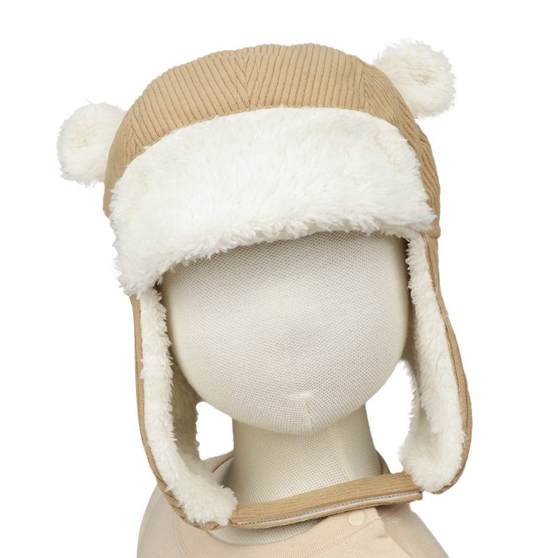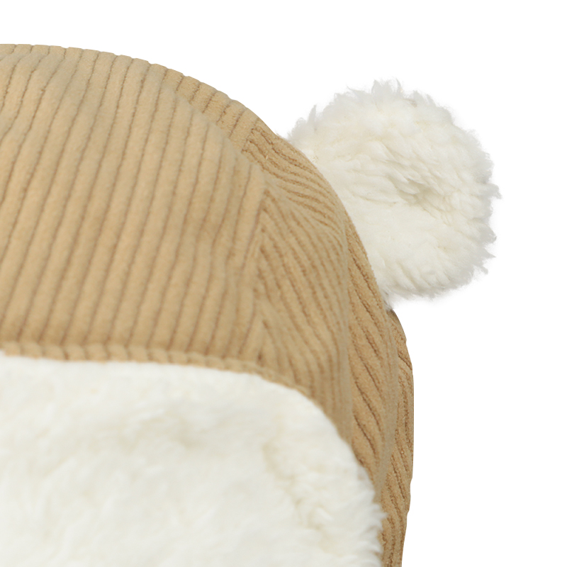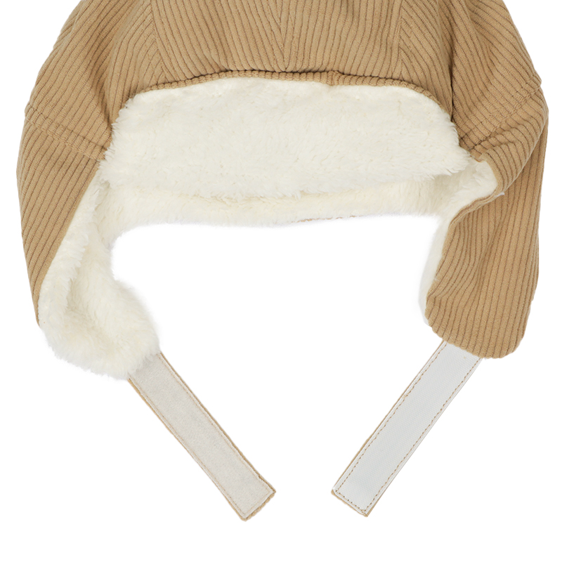 頭に付いた動物モチーフのボア耳が可愛いアイテムです。 やさしい色合いでナチュラルに仕上がります。 フラップ部分は、アップにしたりダウンしたり、仕様を変えられます。 アップにするとボア耳は隠れます。 着脱はアゴ部分にある面ファスナーにより、簡単に行うことができます。