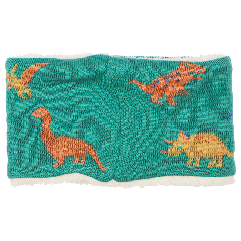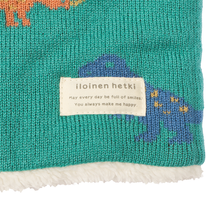 被るだけで、首元をすっぽりと暖かく包み込んでくれるアイテムです。 カラフルな恐竜柄がアクセントになり、コーディネートを楽しめます。 裏地にはボア生地を使用しています。 サイドはプリントネームが飾り、こなれた印象をプラスします。