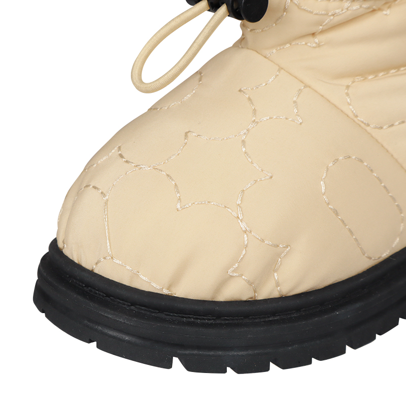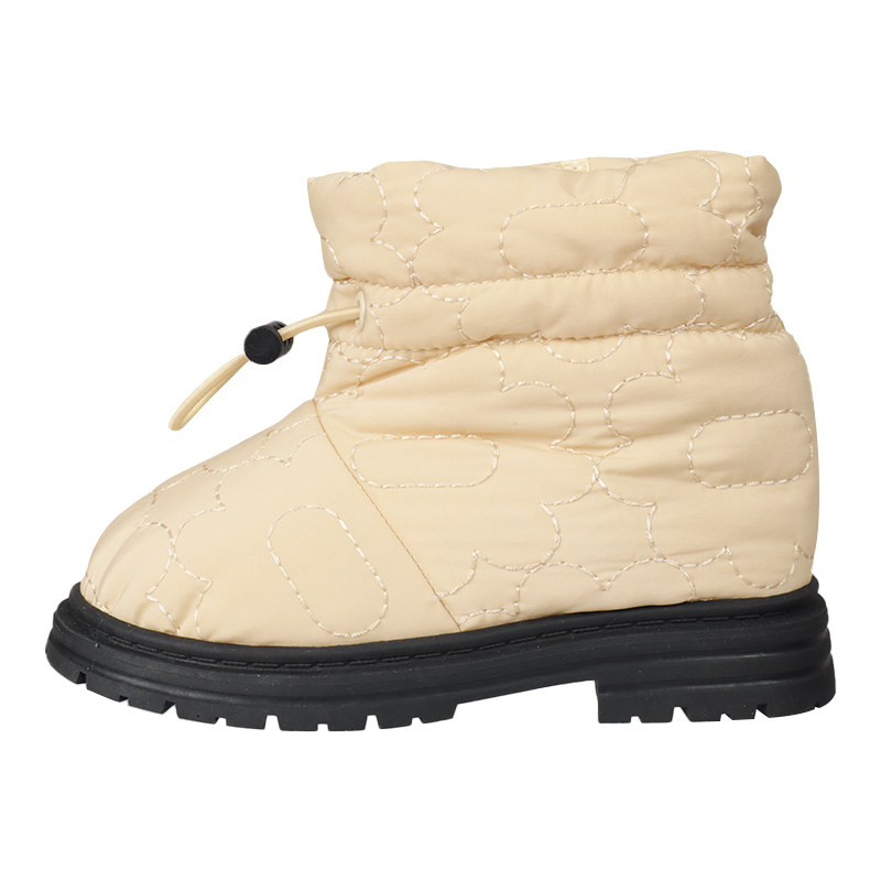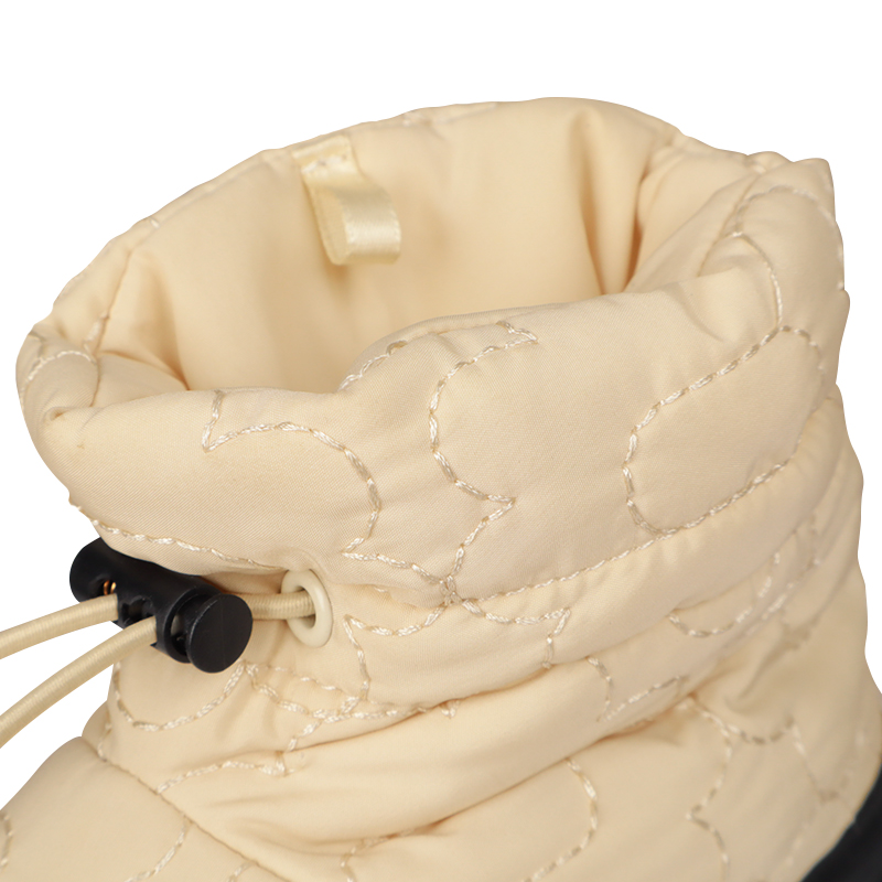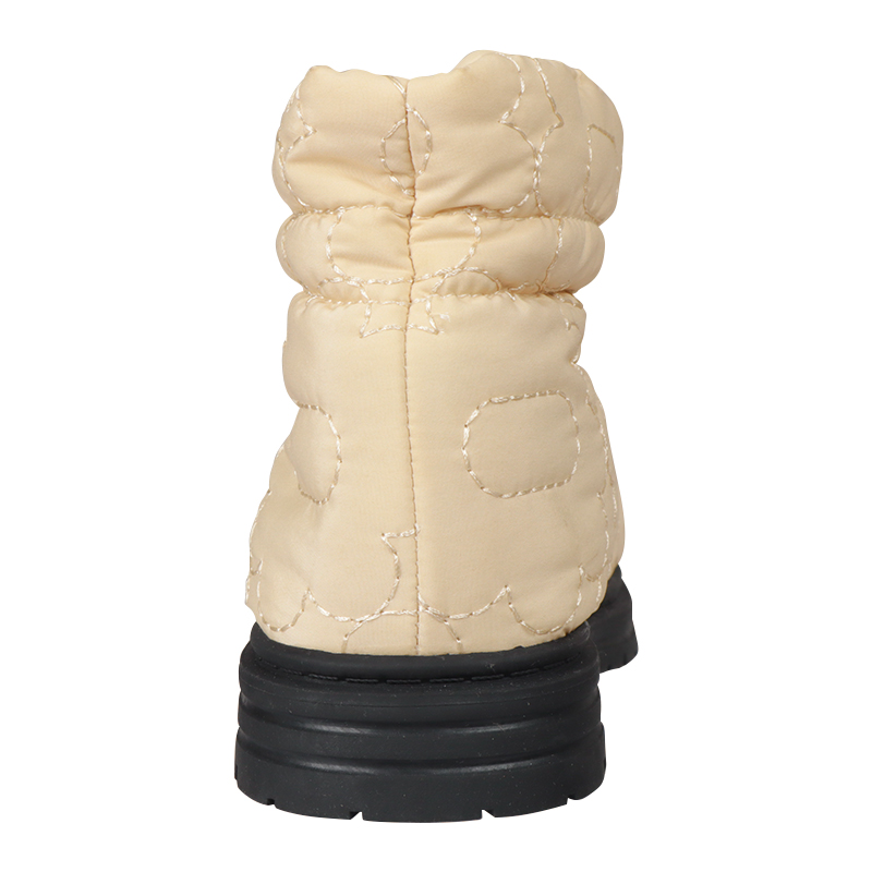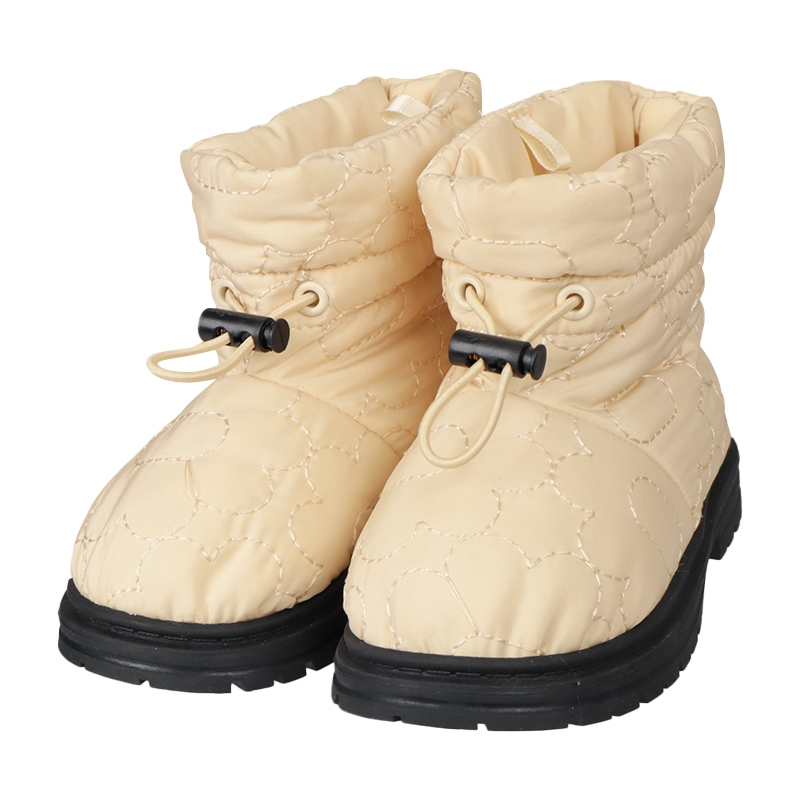 キルト素材がとても柔らかく足当たりも良い素材を使っております。 オフホワイトで統一されたカラーとさり気ない花柄ステッチが可愛く仕上がってます。 スッと履ける履きやすいデザインです。