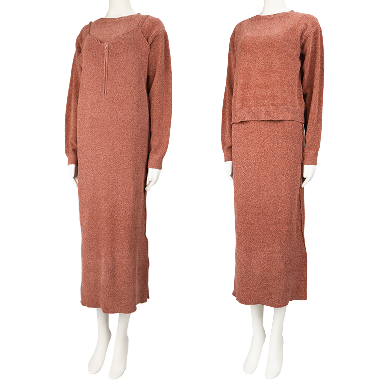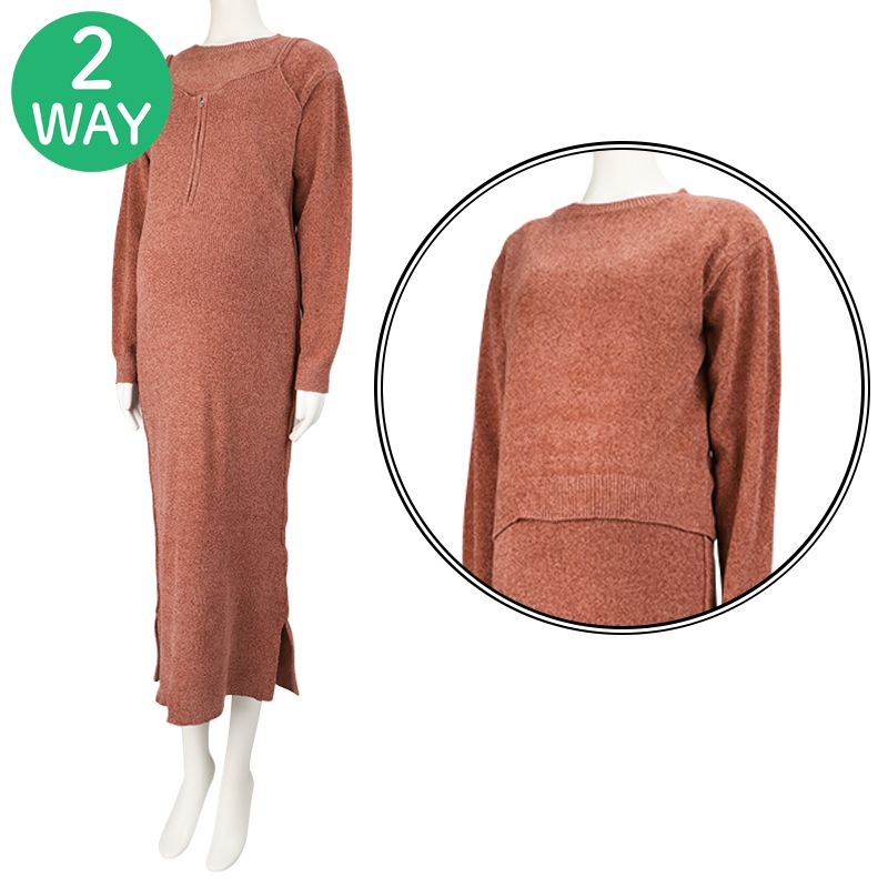 ●素材=トップス ワンピース ポリエステル100% ●洗濯表示=液温は40℃を限度とし洗濯機で非常に弱い洗濯処理ができる。漂白処理はできない。タンブル乾燥はできない。日陰での平干し乾燥がよい。アイロン仕上げはできない。石油系溶剤又はデカメチルペンタシクロシロキサンによる弱いドライクリーニングができる。非常に弱いウエットクリーニング処理ができる。●サイズスペック=ワンピース M 身幅43 後身丈104 スカート裾巾46 L 身幅45 後身丈108 スカート裾巾48 トップス M 身幅45 着丈48 肩幅42 袖丈55 L 身幅47 着丈50 肩幅44 袖丈57 ●対象期間=産前~産後