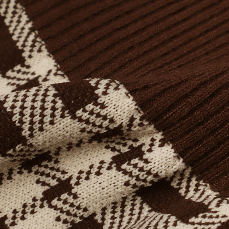 トップス部分もスカート部分も、ニット素材となります。トップス部分はリブ編み、スカート部分はチェック柄編みとなります。両脇に目立ちにくいコンシールファスナーが付いていて、授乳する事ができます。ネットに入れて、洗濯機で洗う事ができます。