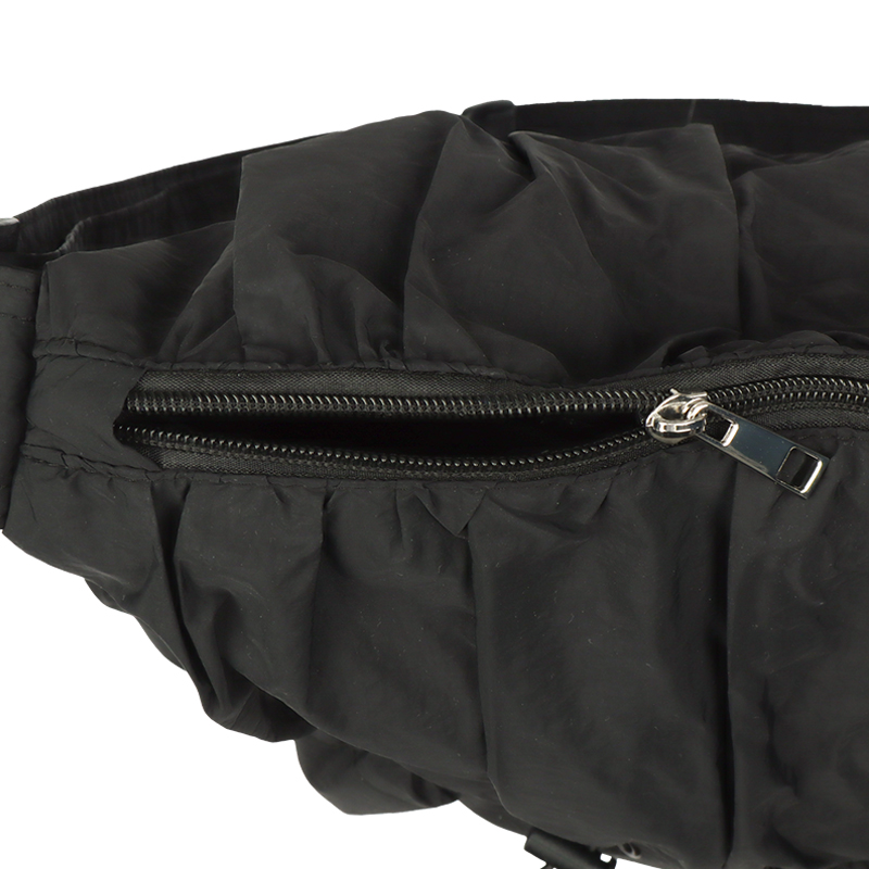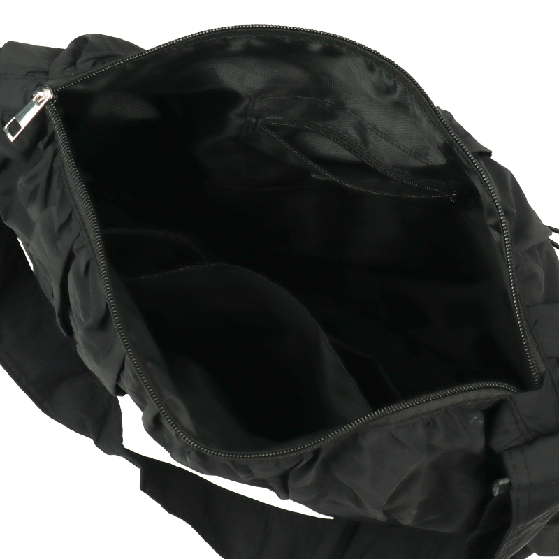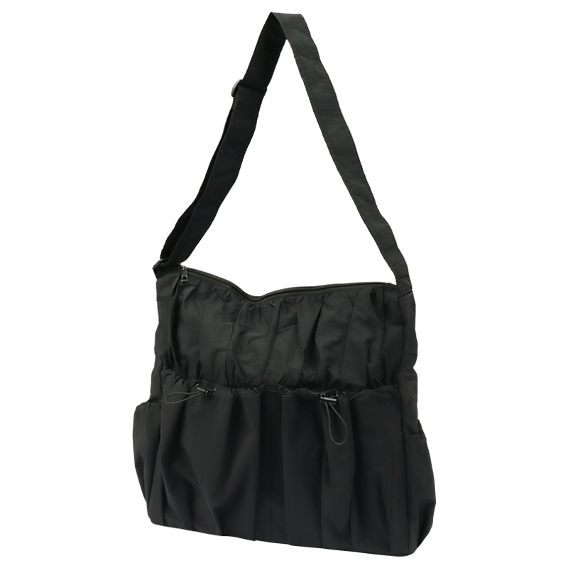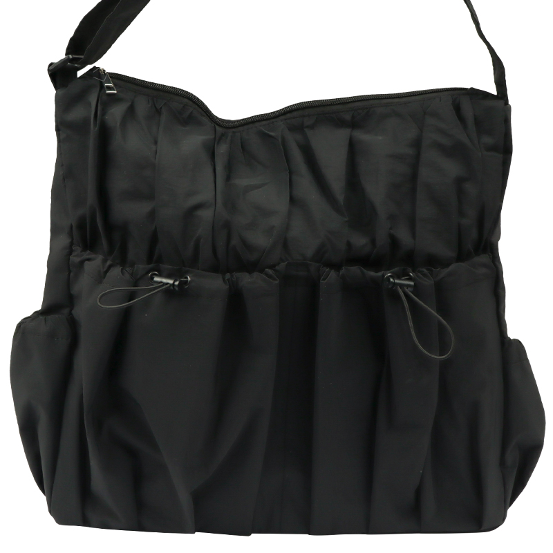 ●素材=表地 ナイロン100% メッシュ、裏地 ポリエステル100% パッチ部分 合成皮革 ●洗濯表示=なし ●サイズスペック=バッグ高さ38 バッグ巾40.5 底よこ巾40.5 底たて巾12 ショルダー長さ 最長110 ショルダー長さ 最短55