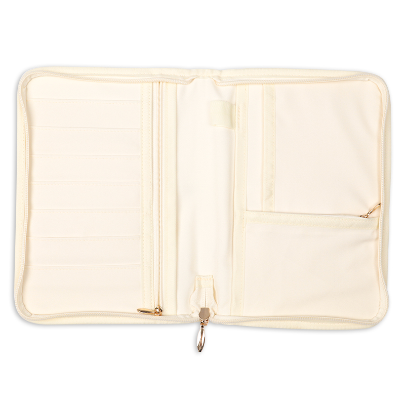 韓国発のキルティング素材“イブル”を使用した母子手帳ケースです。母子手帳や保険証、診察券などまとめて収納でき持ち運びにも便利。内側には、ペン差し・カード入れ・ファスナーポケットがあります。母子手帳ケースとしてはもちろん、通帳やパスポート入れなど、マルチに使用できます。