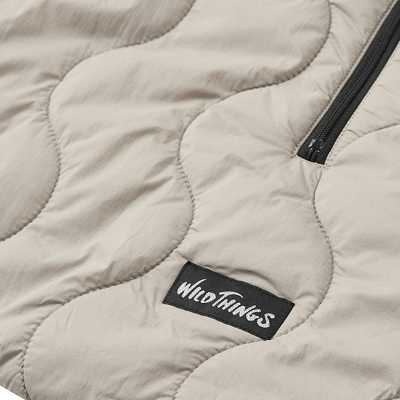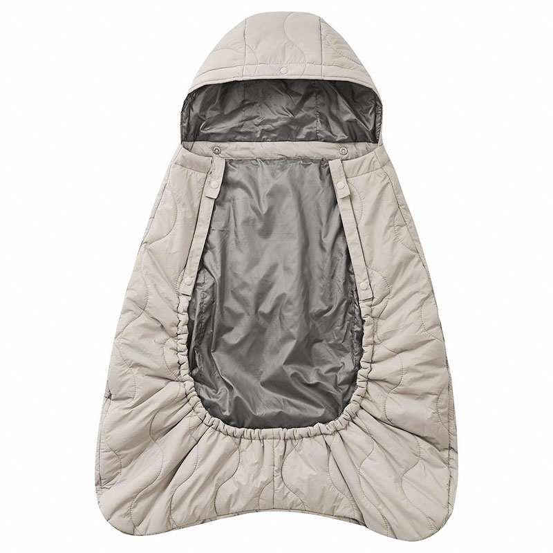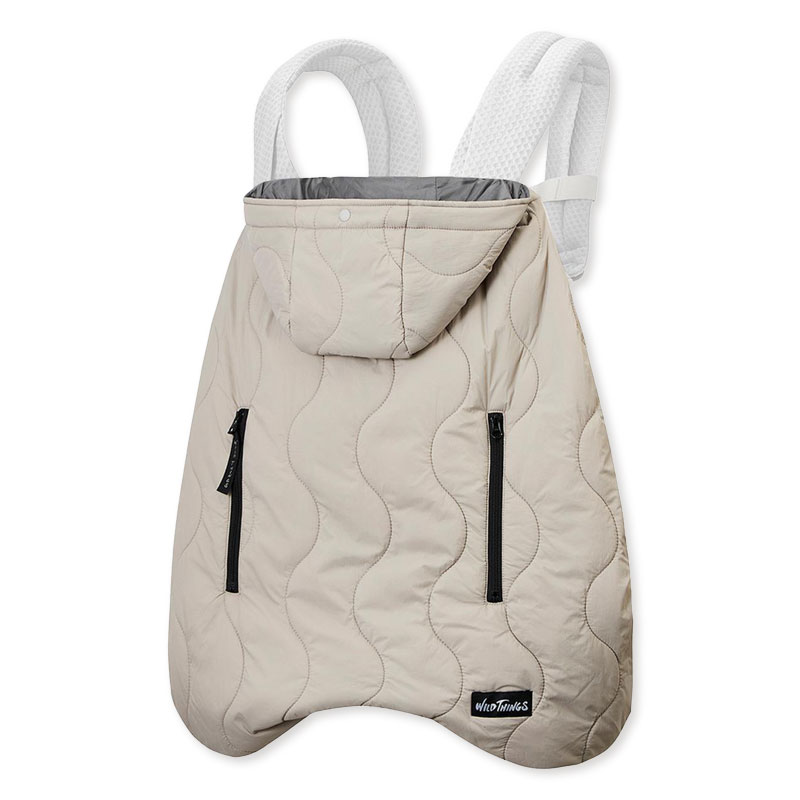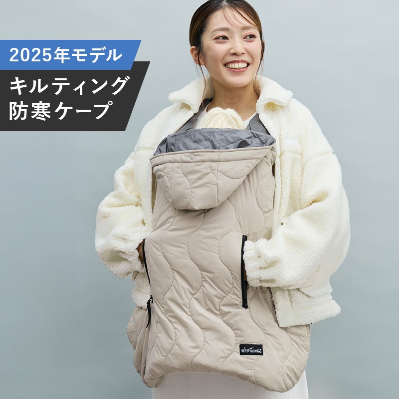 \非常に軽量で快適な付け心地/ WILD THINGS×BabyHopper ミリタリーのライナーをベースにデザインされたキルティング。 約240gと非常に軽量で快適な付け心地。 保温性にも優れデイリー使いしやすく秋から冬まで長い期間使用できます。 軽量でしっかり暖かいサーモライトR※1エコメイド使用。 ハンドウォーマーで暖かさをキープ。 すき間風を防ぐゴムシャーリングで赤ちゃんの足もとをカバー。 ※1 サーモライトRはThe LYCRA Companyの商標です。 ・前向き抱きに対応 ・ベビーカーにも取り付け可能 ・手洗いOK