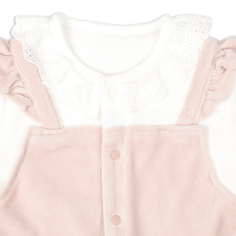 ●素材= NB 本体:綿75%ポリエステル25% 縁どり・衿 :綿 100% P 本体:綿75%ポリエステル25% 縁どり・レース :綿 100% ●サイズ(約・cm)= 60(身丈52・身幅25・袖丈17.5) 70(身丈56・身幅26・袖丈20.5)