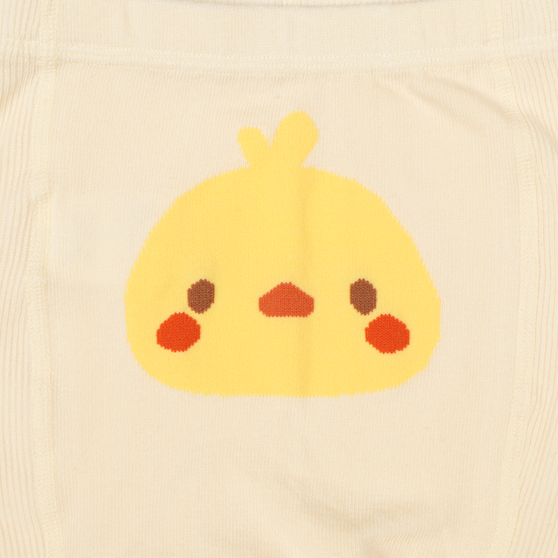お尻部分がひよこさんとパンダさんとくまさんの編み柄になっています。