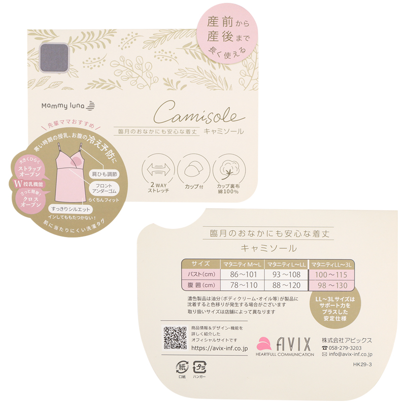 アンダーはフロント部分にゴムが入り、ストラップの丈調節も可能なのでボディにやさしくフィット。臨月も安心な着丈で、ボトムインにも快適。