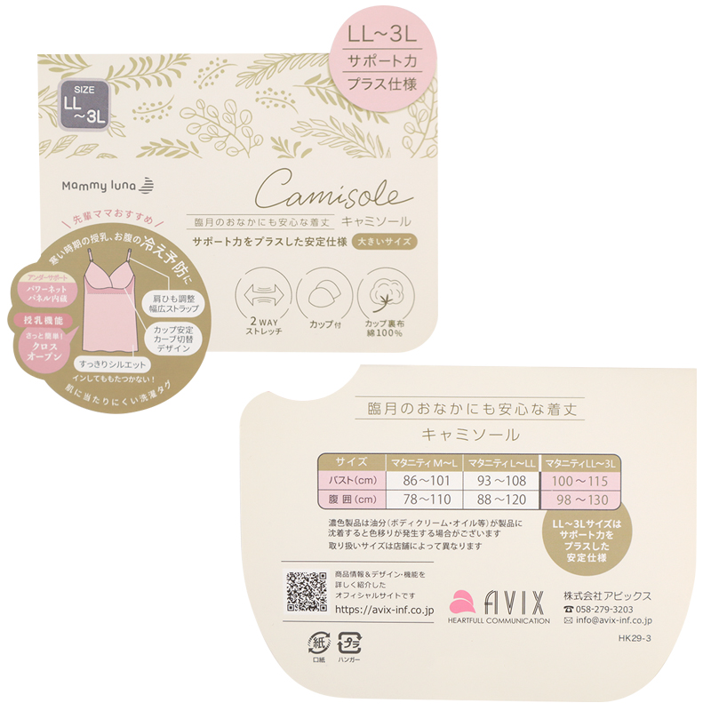 ●素材=身生地:ポリエステル90% ポリウレタン10%、レース部分:ナイロン ポリウレタン ●サイズ(cm)=LL~3L(バスト100~115 腹囲98~130) ●洗濯表示=洗濯可 ●原産国=中国製 ●付属=取り外し可能カップ付き