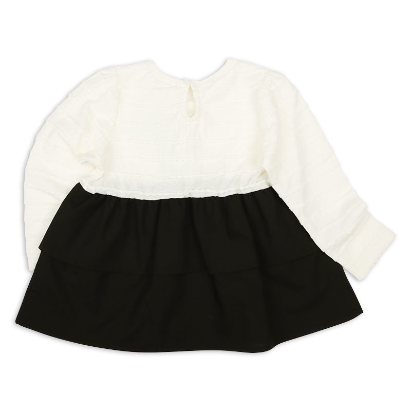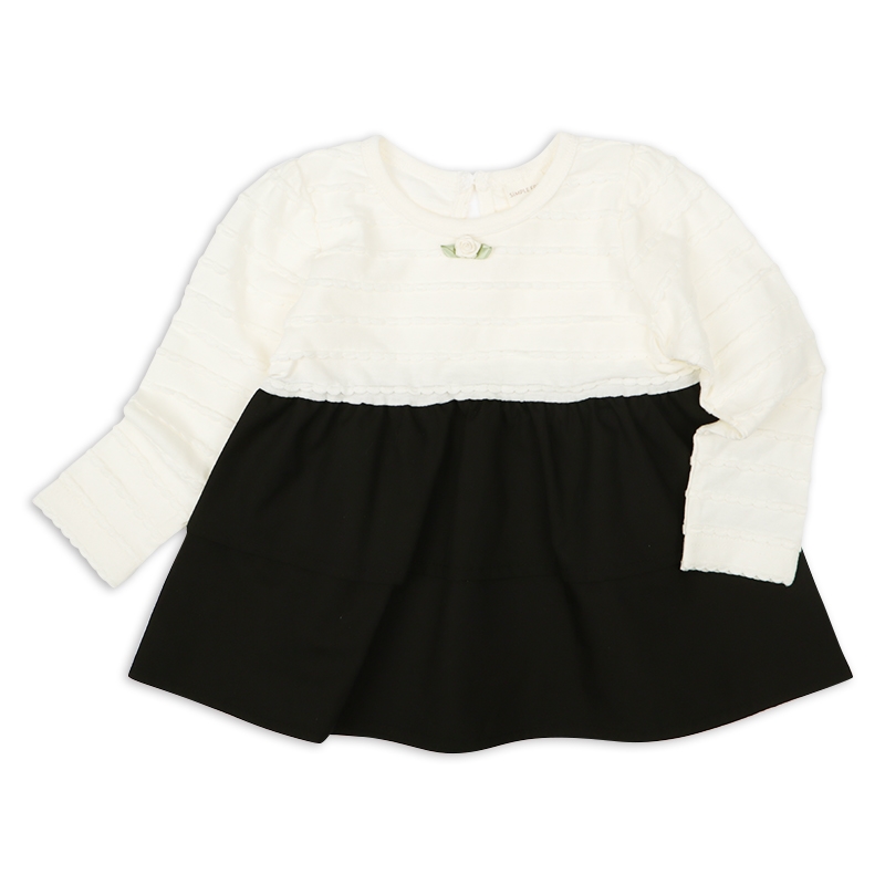 ●素材=上身頃Tシャツ部綿100% 下身頃スカート部ポリエステル65% 綿35% ●サイズ(約・cm)=80(着丈34 身巾27 袖丈27 裾巾48)90(着丈36 身巾28 袖丈30 裾巾50)95(着丈38 身巾29 袖丈32 裾巾52)