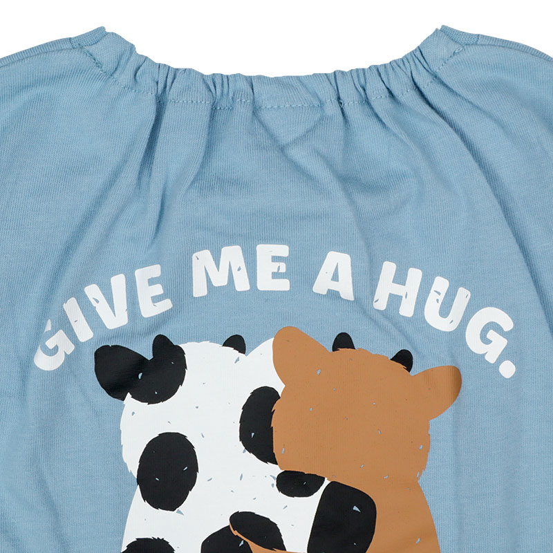 動きやすく快適でやさしい綿100%素材に、人気のアニマル柄と格好良いバックビッグプリント、 さらにらくらく着用できる首回りゴム仕様を組み合わせたアイテムです。