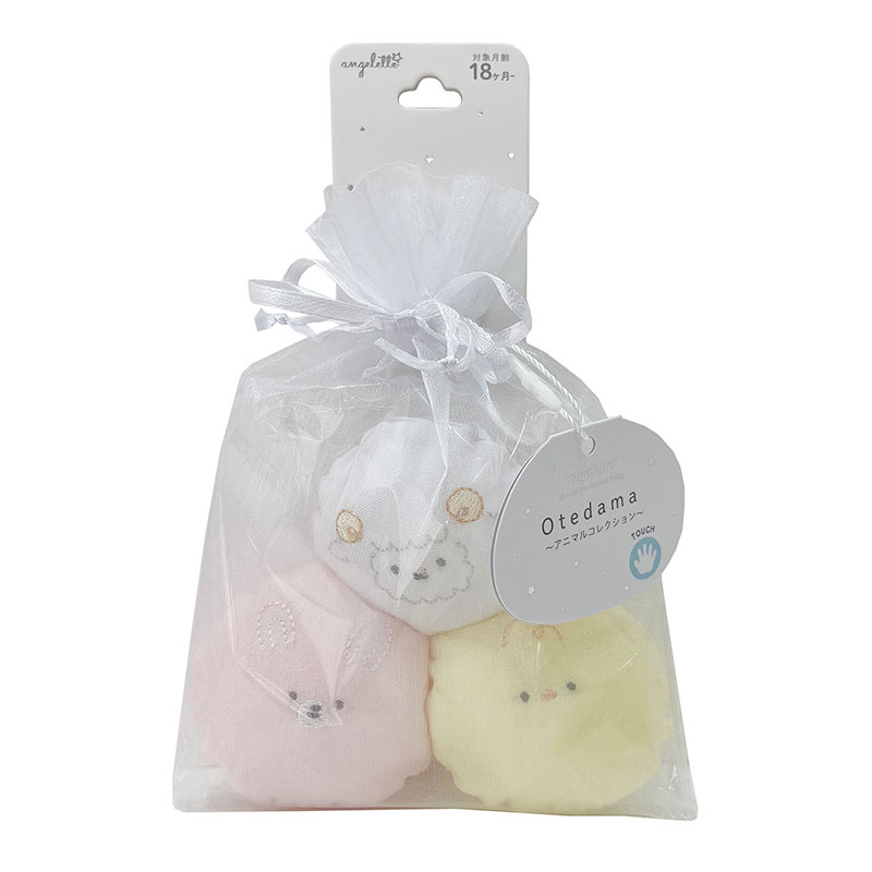 にぎって、転がして、月齢に合わせた遊び方ができるアンジェレッテのおてだま。 ママパパと一緒に遊べるアニマルデザインのおてだまは、 月齢に合わせて様々な遊び方ができます。 ・にぎにぎすることで指先に刺激を与え、 おてだまをつかんだりスタッキングすることで指先運動ができます。 ・アニマルのデザインでごっこ遊びなど、 遊び方を考える力を育みます。 ・月齢が上がるにつれ、ママパパと、おてだまの遊び方を教えながら 一緒に遊ぶひとつのコミュニケーションのツールにもなります。