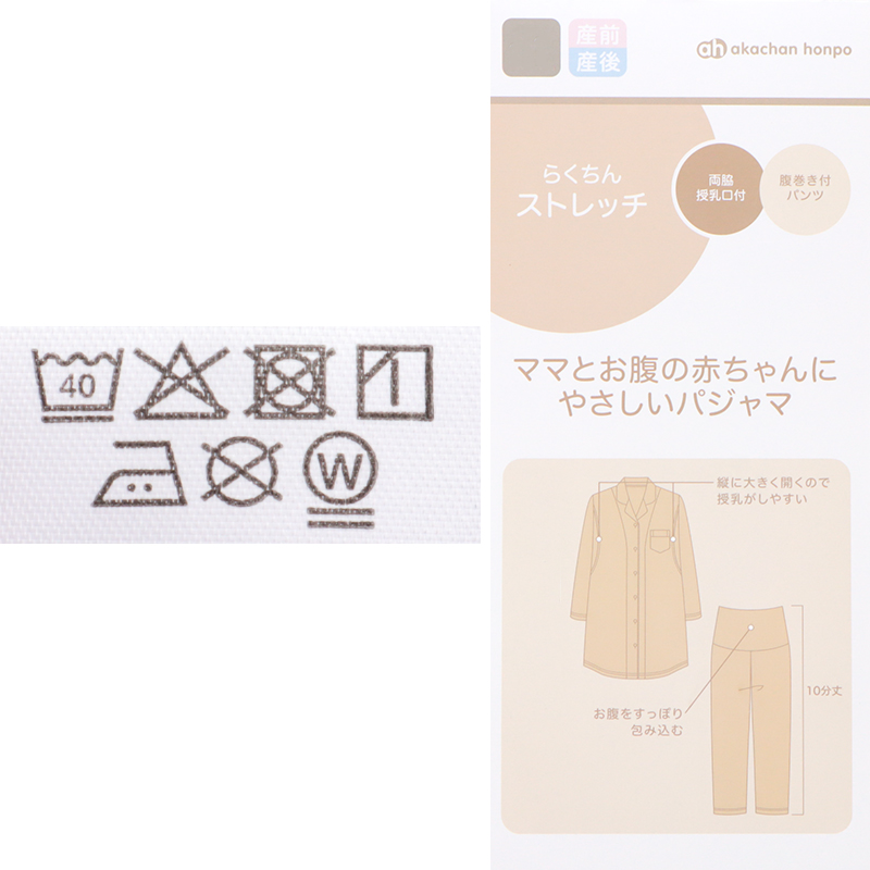 やわらかで着心地がいい素材のマタニティパジャマ。 ストレッチ性もあり、体の動きに合わせて快適フィット。 スナップボタン不使用、脇部分のスリットタイプ授乳口なので授乳もしやすく、見た目もすっきり。 パンツはおなかをすっぽり包むウエスト仕様。めくれても、おなかを冷やさない腹巻付き