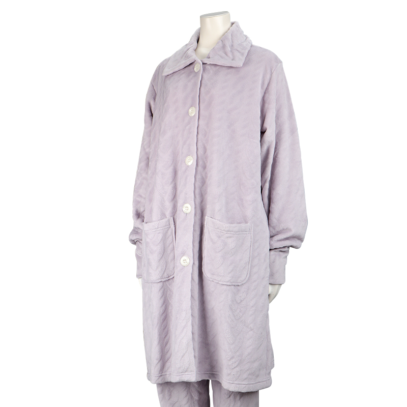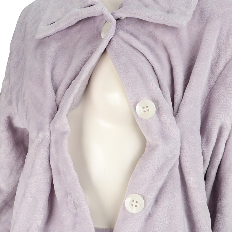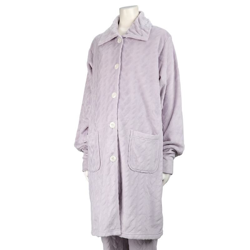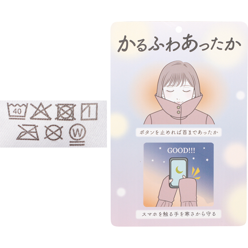 軽くてあったかなジャケット。衿元のボタンを留めれば首元あったか。手の裾部分もあったか仕様のあったかルームウェア