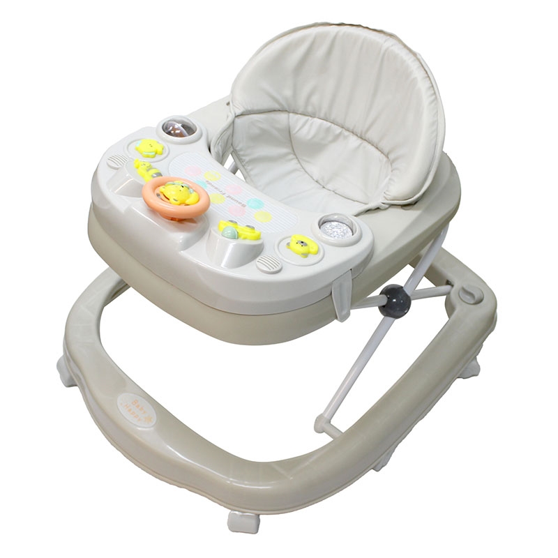 \お部屋になじむベージュカラー/ ・メロディがたのしめるおもちゃボード付です ・お子様の成長に合わせて7段階の高さ調整が可能です ・お子様の動きを制限したい時のストッパー付き ・消音キャスター搭載 ・小さくたためてコンパクト、持ち運びにも便利です