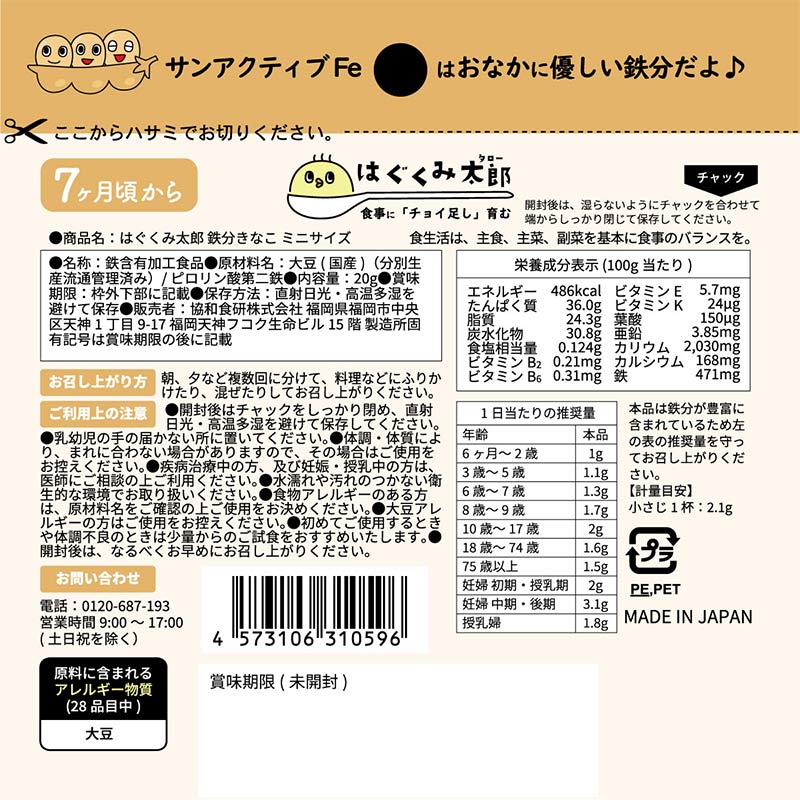 ●内容量:20g ●原材料名:大豆(国産)(分別生産流通管理済み)/ピロリン酸第二鉄 原材料に含まれるアレルギー物質:大豆