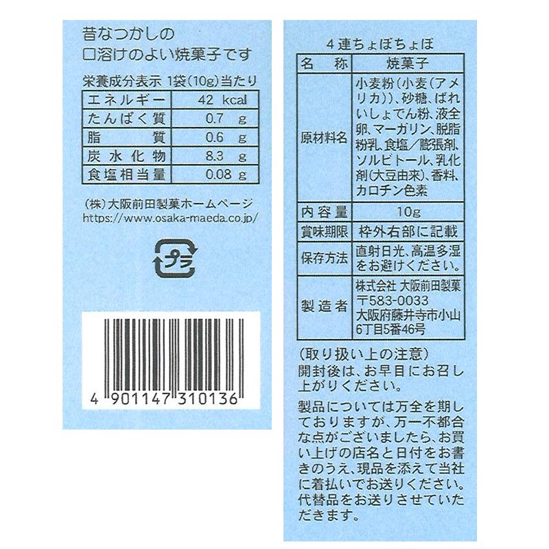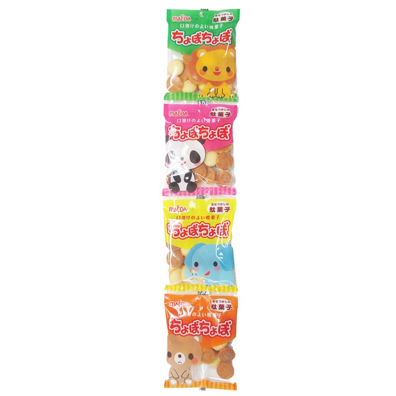 一口サイズの軽い食感のクッキーを食べきりサイズに包装し、ちょっとずつ楽しめるおやつにしました。 落とし焼き製法で焼き上げた、昔なつかしの口溶けの良い焼菓子です。 4連タイプで1袋12g食べきりサイズです。お出かけなどにも便利です。 パッケージの絵柄は全部で4種類。お子様に人気のかわいい動物の絵柄が描かれています。