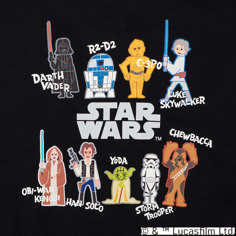 ●素材=本体:綿52%、ポリエステル48%、リブ部分:綿57%、ポリエステル41%、ポリウレタン2% ●サイズ(約・cm) 80(着丈35身幅36袖丈21) 90(着丈38身幅38袖丈25) 95(着丈39.5身幅40袖丈27) 100(着丈41身幅42袖丈29) 110(着丈44身幅44袖丈33) 120(着丈47身幅46袖丈37) 130(着丈50身幅48袖丈41) ●洗濯表示=洗濯可・ドライクリーニング不可 ●原産国=中国 &?Lucasfilm LTD.