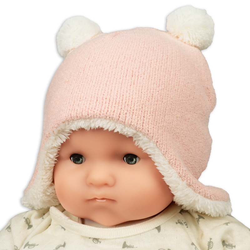[42~48cm]やわらかウィンター帽 耳付き 裏ボア ピンク