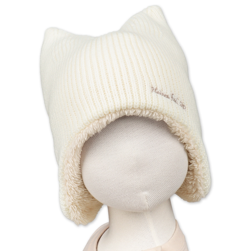 [48~54cm]ウィンター帽 耳付き 裏ボア オフホワイト