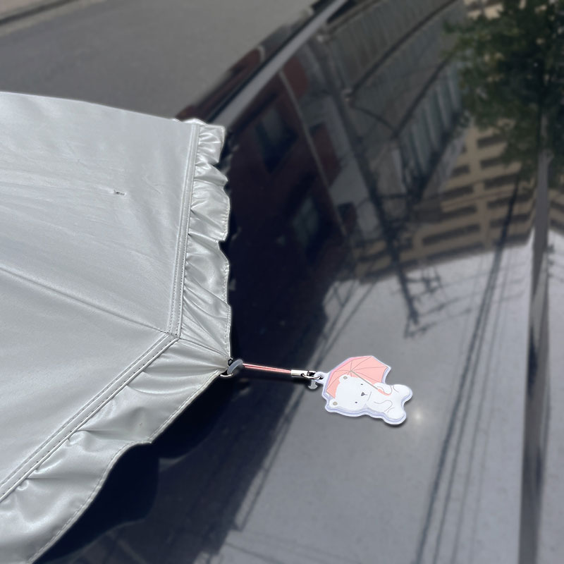 車の屋根部分に乗せるだけでピタっと簡単に傘を固定でき両手をあけられます。