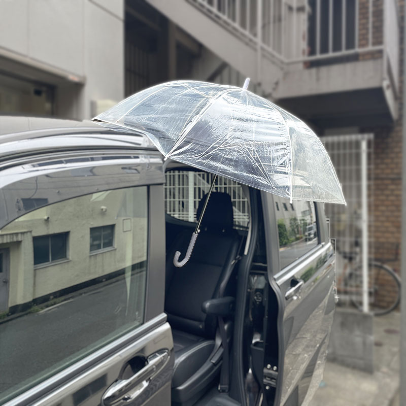 雨の日に、濡れずに車へ乗せ降ろしができる傘ピタ。