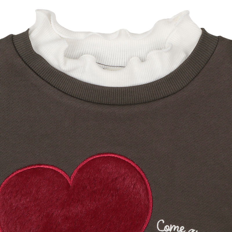 本体:綿85%ポリエステル15% リブ部分:綿95%ポリウレタン5% 衿フリル:ポリエステル63%綿34%ポリウレタン3% ボア部分:ポリエステル100% 【100cm】着丈40胸囲72肩幅34袖丈29 【110cm】着丈43胸囲76肩幅36袖丈33.5 【120cm】着丈46胸囲80肩幅38袖丈38