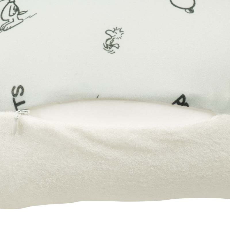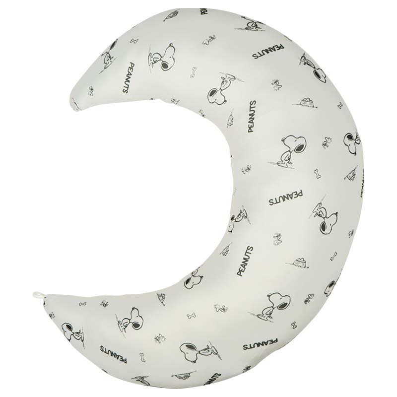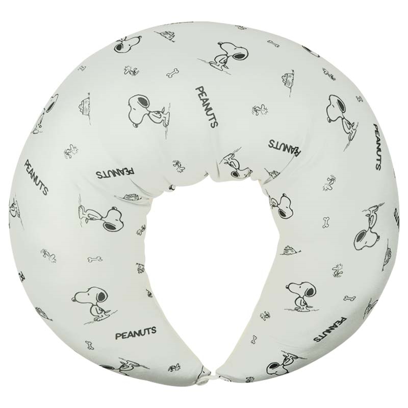 伸縮性があり、なめらかでサラッとした手触りが心地よいストレッチ天竺素材の授乳用クッションです。さりげない線画のスヌーピー総柄がおしゃれで、色味もインテリアを邪魔しないグレーなのでリビングに置いたままでも、インテリアに馴染みます。