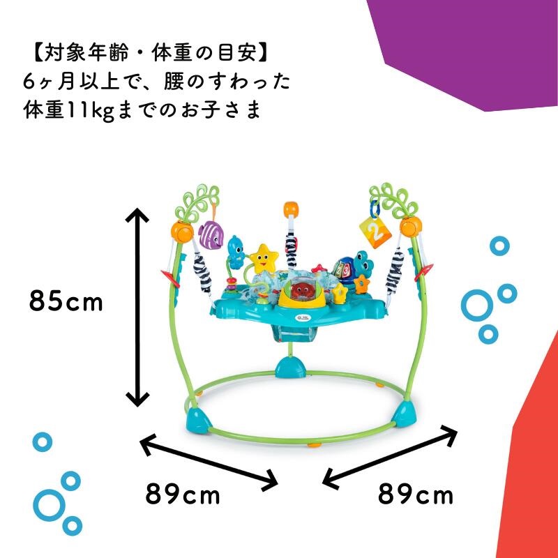 ●対象年齢:6ヵ月~腰のすわった体重11kgまで ●商品サイズ:[組み立てサイズ]W89×H85×D89cm ●梱包サイズ:W65×H65×D17.8cm ●電池の使用:単3電池×3本使用(別売) ●セット内容: ・ネプチューンピアノ ・ネプチューンピアノベース ・魚のおもちゃ ・フラッシュカード ・タコのビーズチェイサー ・カニのスピナー ・ヒトデのミラー ・海藻のレッグトッパー×2 ・リンクループ×3 ・シートパッド ・プレイテーブル ・ベースチューブ×3 ・シートリング ●素材:PP・ABS・POM・鋼・ポリエステル