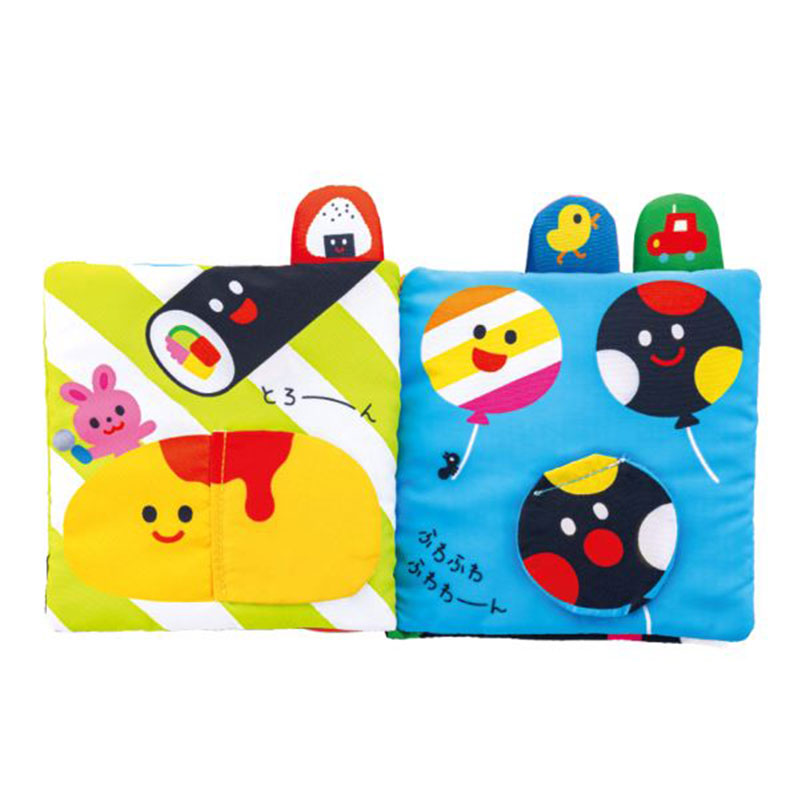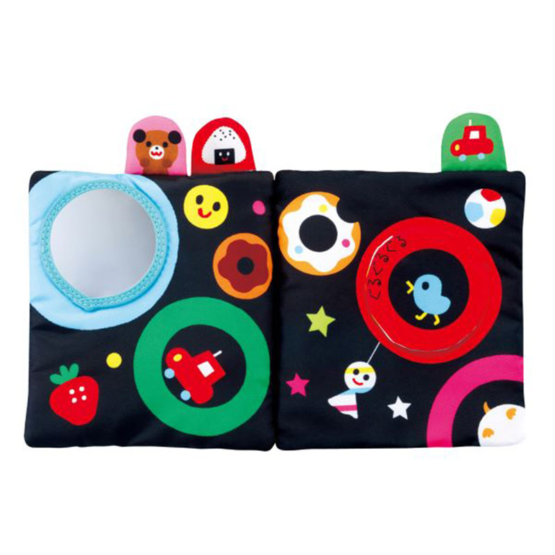 赤ちゃん認識絵本売り上げNo.1『しましまぐるぐる』のベビートイシリーズ! 聞いてさわって楽しめる。指先あそびたっぷりの知育えほん。 表紙のしましまぐるぐるはめくるとお顔が変わります。 ページ上部についたぐるぐるとひよこをつまむと、 それぞれ楽しい効果音が4種類ずつ鳴ります。 くるまはパリパリセロファンの楽しい手ざわり。 1ページ目のオムライスをめくると、おさるさんみっけ。 となりのふうせんにはいろんなものがかくれんぼ。 3ページ目には赤ちゃんが大好きなミラー。 4ページ目の小鳥をめくるとハムスターみーつけた。 メロディボタンは押すごとに1曲ずつメロディが流れます。 収録曲は『みんなでうたおう しましまぐるぐる』と童謡の全5曲。 おでかけに便利なリング付きです。楽しい音とメロディがいっぱい。 聞いてめくってかくれている絵を見つけよう。 音と手触りを楽しみながら指先の発達を育みます。