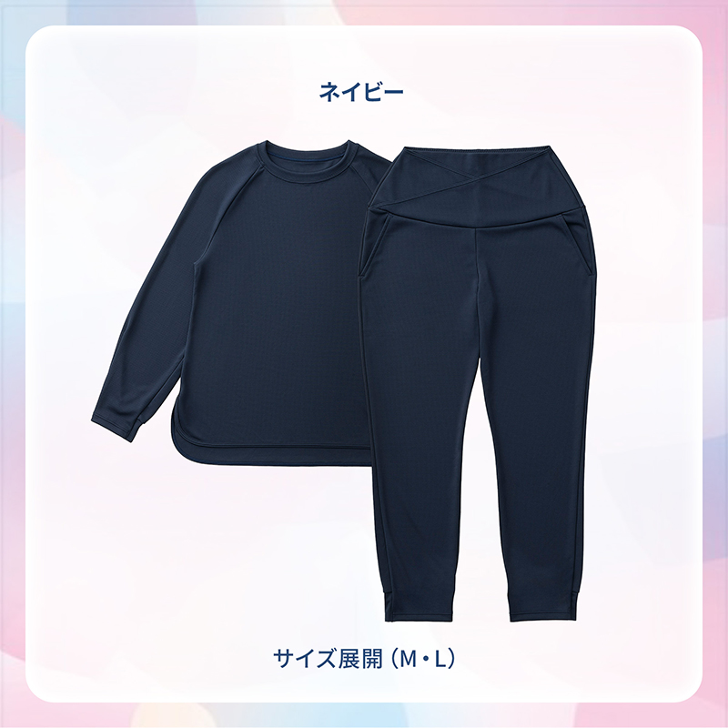 素材:ポリエステル100% Lサイズ トップス胸囲86~94cm、ボトムスウエスト69~77cm、ボトムスヒップ92~100cm Mサイズ トップス胸囲79~87cm、ボトムスウエスト64~70cm、ボトムスヒップ87~95cm
