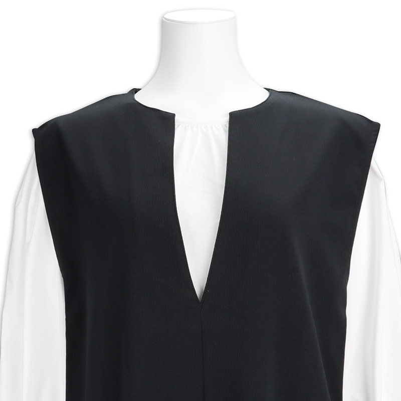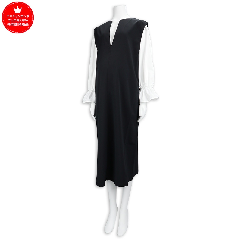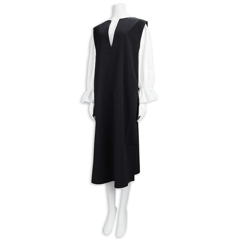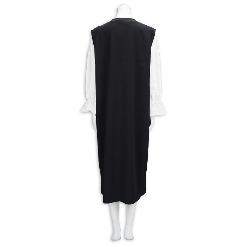 ●素材=ジレ:ポリエステル95% ポリウレタン5% プルオーバー:本体 ポリエステル65%コットン35% 袖部分 ポリエステル100% ●サイズ(約 cm)=ワンピース:M(バスト115.5 着丈114.3) L(119.5 着丈116.3)プルオーバー:M(バスト96.9 着丈59.0) L(バスト100.9 着丈60.8)