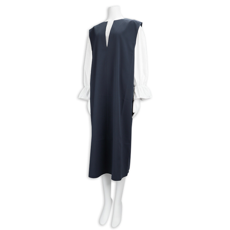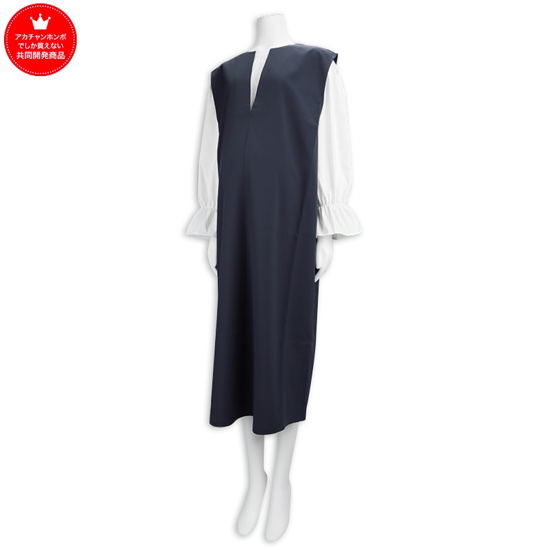 ●素材=ジレ:ポリエステル95% ポリウレタン5% プルオーバー:本体 ポリエステル65%コットン35% 袖部分 ポリエステル100% ●サイズ(約 cm)=ワンピース:M(バスト115.5 着丈114.3) L(119.5 着丈116.3)プルオーバー:M(バスト96.9 着丈59.0) L(バスト100.9 着丈60.9)