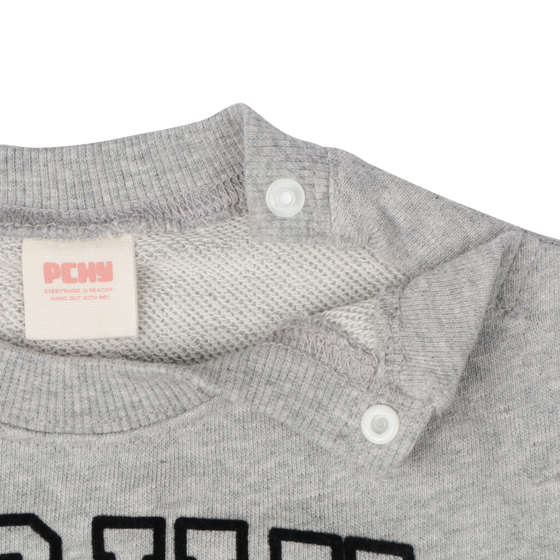 <商品サイズ> 80(身丈33・身幅39・袖丈20.5・裾幅39) 90(身丈35・身幅40・袖丈24・裾幅40) 100(身丈39・身幅42・袖丈28・裾幅42) 110(身丈42・身幅44・袖丈32・裾幅44) 120(身丈45・身幅46・袖丈36・裾幅46) <素材> 本体 綿100% リブ部分 綿96%ポリウレタン4%