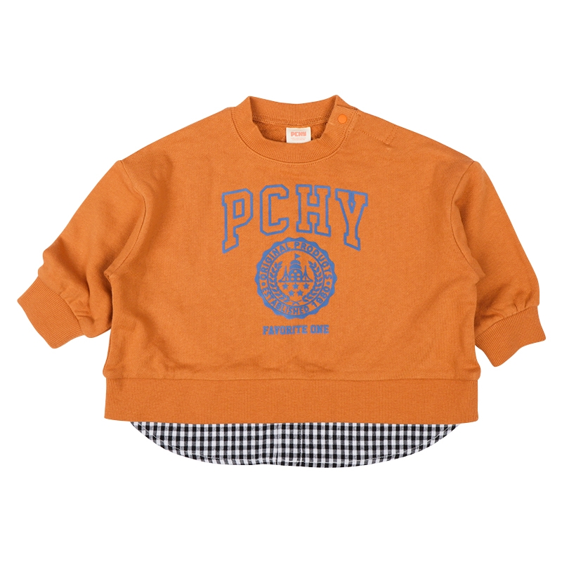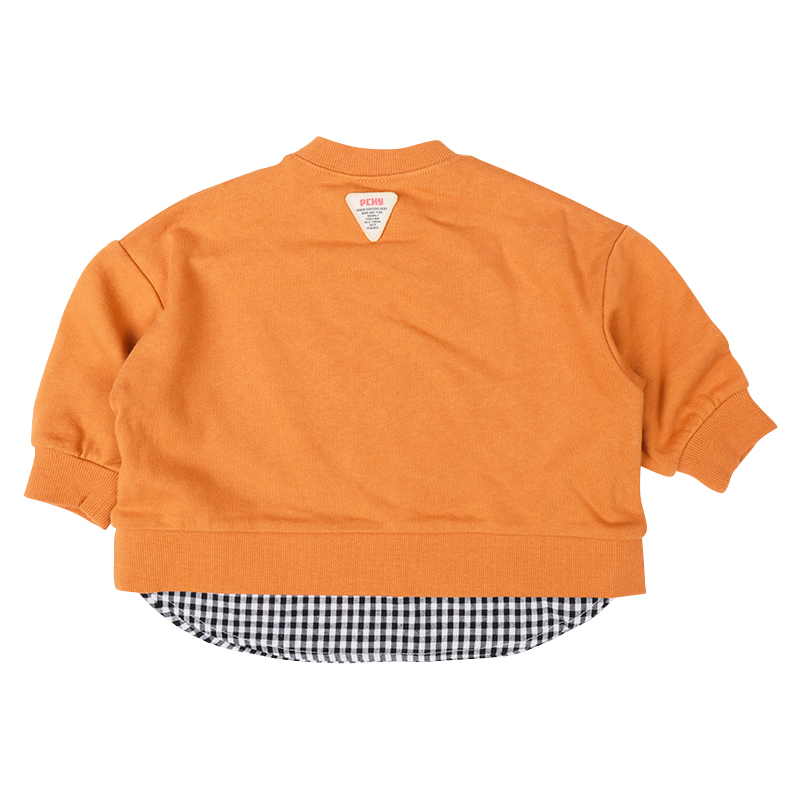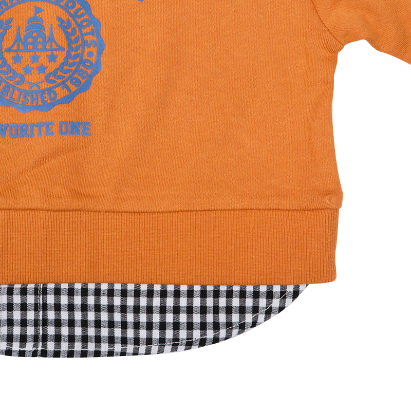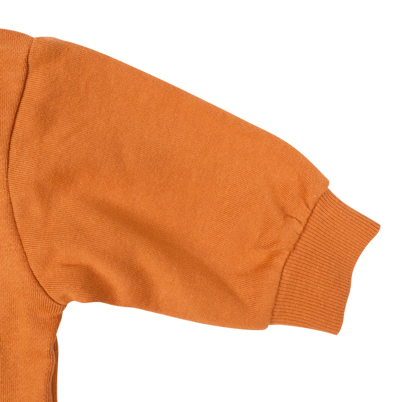<商品サイズ> 80(身丈33・身幅39・袖丈20.5・裾幅39) 90(身丈35・身幅40・袖丈24・裾幅40) 100(身丈39・身幅42・袖丈28・裾幅42) 110(身丈42・身幅44・袖丈32・裾幅44) 120(身丈45・身幅46・袖丈36・裾幅46) <素材> 本体 綿100% リブ部分 綿96%ポリウレタン4%