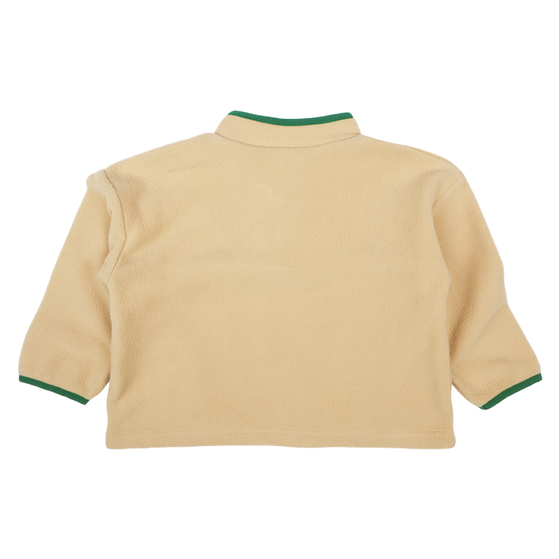<商品サイズ> 80(身丈33・身幅35・袖丈20.5・裾幅39) 90(身丈35・身幅36・袖丈24・裾幅40) 100(身丈39・身幅39・袖丈28・裾幅42) 110(身丈42・身幅41・袖丈32・裾幅44) 120(身丈45・身幅43・袖丈36・裾幅46) <素材> 本体 ポリエステル100% バインダー ナイロン85%ポリウレタン15%